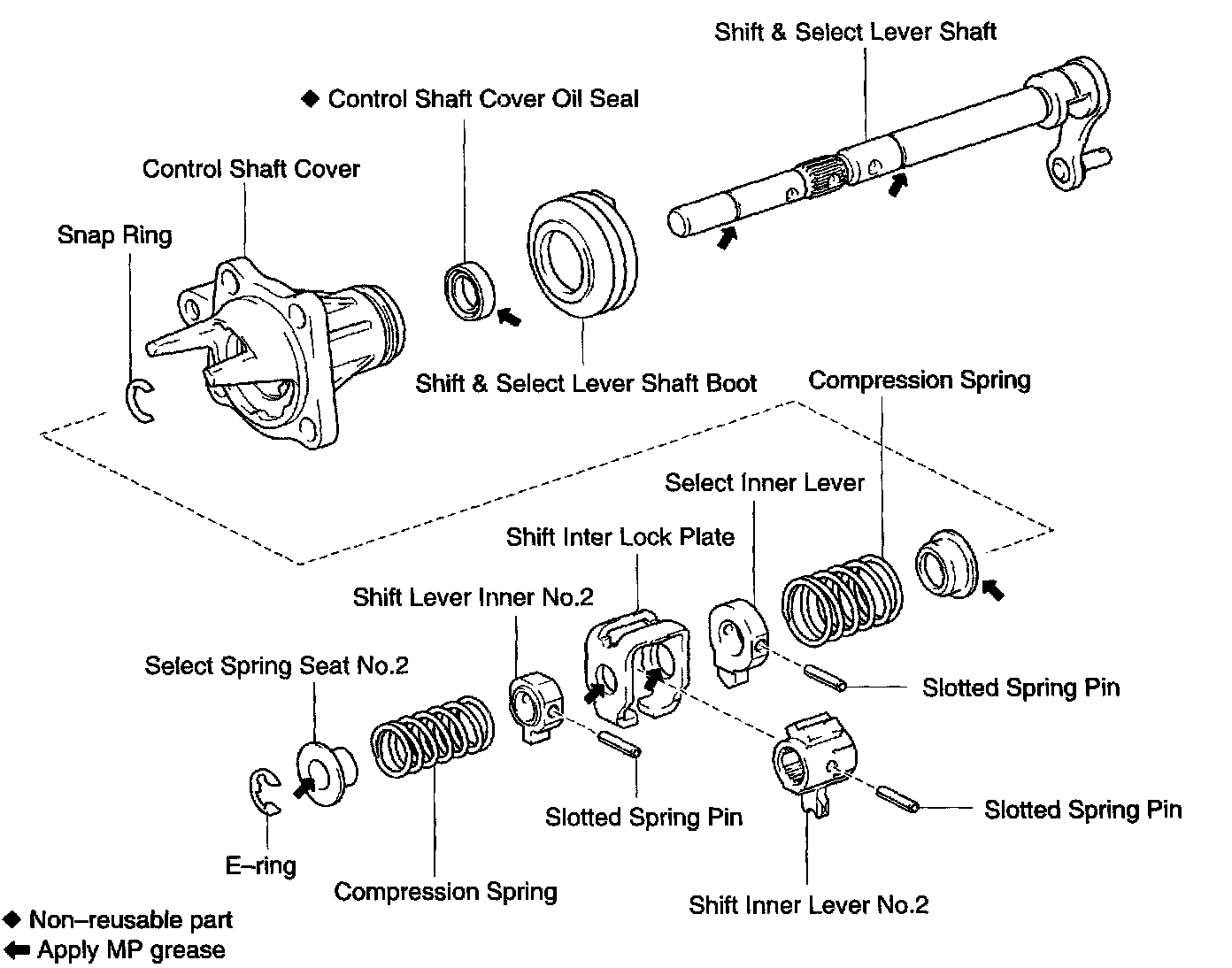 SHIFT & SELECT LEVER SHAFT ASSY OVERHAUL W/ RELATED COMPONENTS