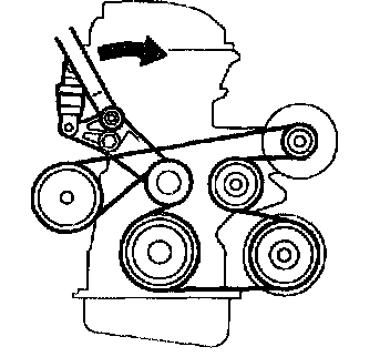 a. Turn the V-ribbed belt tensioner slowly clockwise and loosen it. Then, remove the fan and generator V-belt and put back the V-ribbed belt tensioner little by little and fix it quietly.