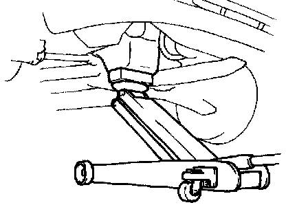 b. Place a wooden block between the jack and engine, and set the jack, then remove the 4 bolts, the 2 nuts and engine mounting insulator RH