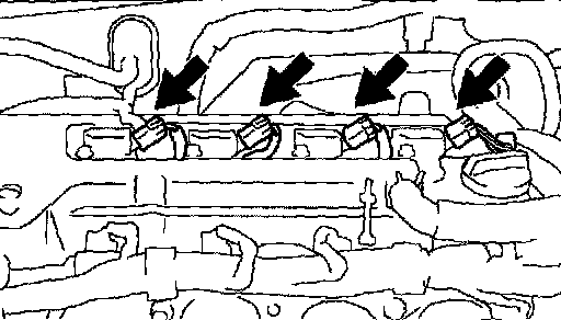 3 Put air pressure into two broken paths (the advance side path and the retard side path) with about 150 kPa (1.5 kgf-cm).
