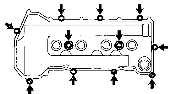- Install the cylinder head cover within 3 minutes after applying seal packing.