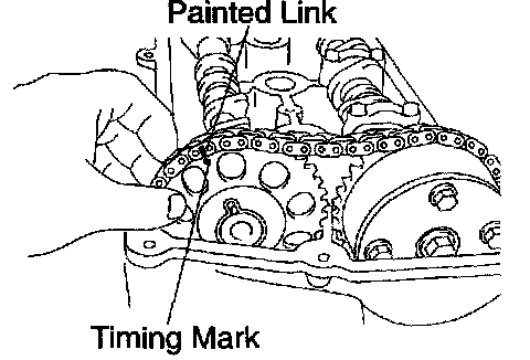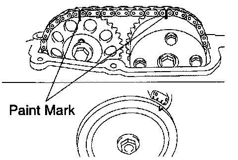 b. Place match marks on the timing chain and camshaft timing sprockets.