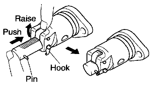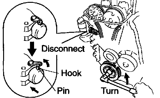 3 Turn the crankshaft counterclockwise, and disconnect the plunger knock pin from the hook.