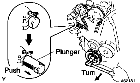 HINT: If the plunger does not spring out, press the slipper into the chain tensioner with a screwdriver so that the hook is released from the knock pin and the plunger springs out.