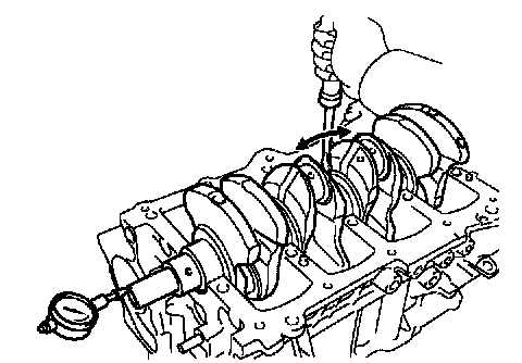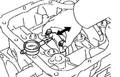 a. Using a dial indicator, measure the thrust clearance while moving the connecting rod back and forth.