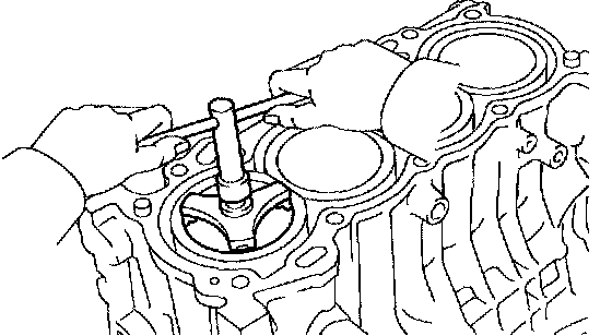 b. Push the piston, connecting rod assembly and upper bearing through the top of the cylinder block.