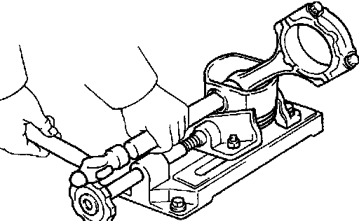c. Using a plastic hammer and brass bar, lightly tap out the piston pin and remove the connecting rod.