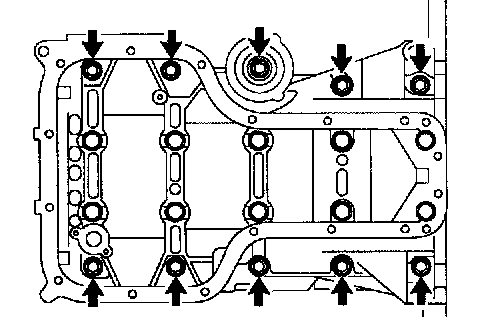 b. Uniformly loosen the 10 bearing cap bolts, in several passes, in the sequence shown in the illustration.