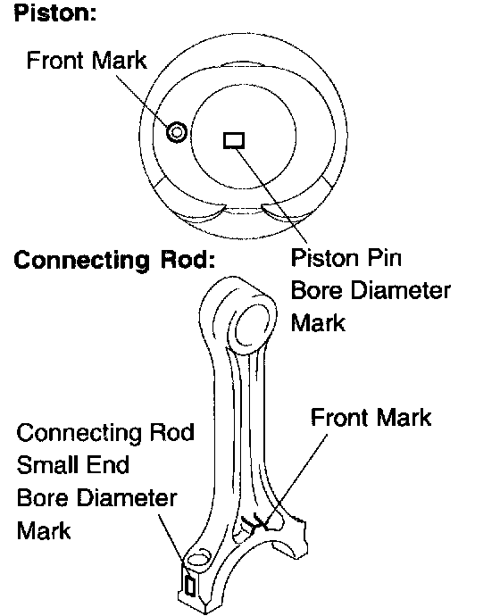 f. Check that the front mark of the connecting rod cap is facing in the correct direction.