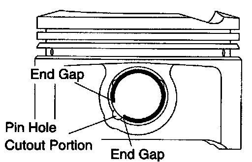 HINT: Be sure that end gap of the snap ring is aligned with the pin hole cutout portion of the piston.