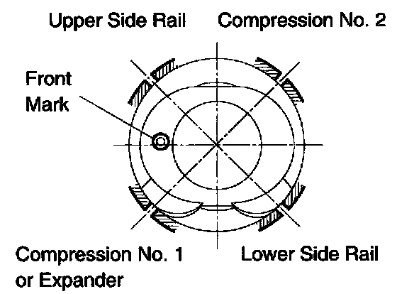HINT: In case of reusing the piston rings, install them to the matched pistons with the surfaces faced correctly.