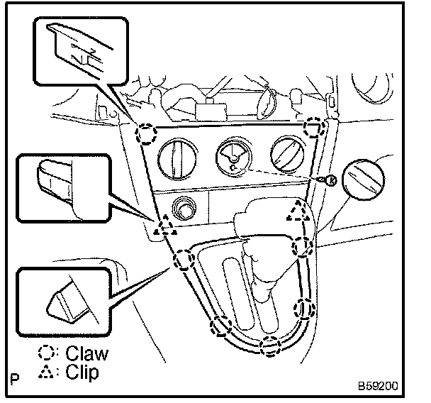 a. Using a moulding remover, disengage the 4 clips and 3 claws.