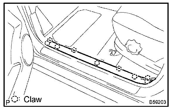 a. Disengage the 9 claws, then remove the front door scuff plate LH.