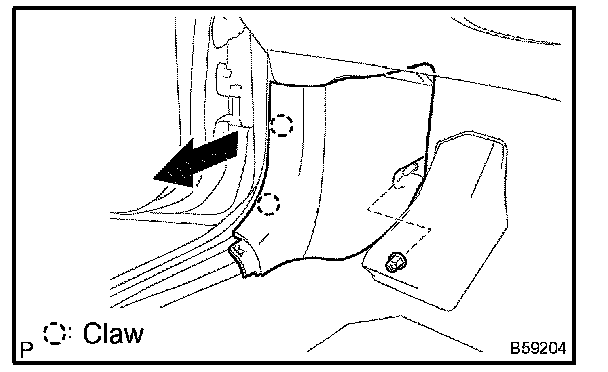 b. Disengage the 2 claws, then remove the cowl side trim board LH.
