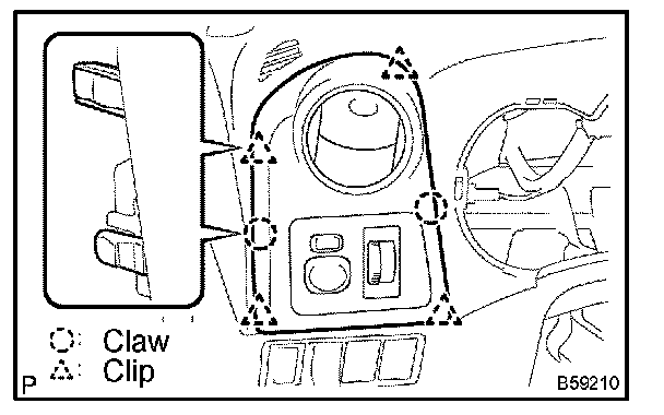 d. Using a moulding remover, disengage the 2 clips and 7 claws, then pull out the instrument cluster finish panel assy CTR.