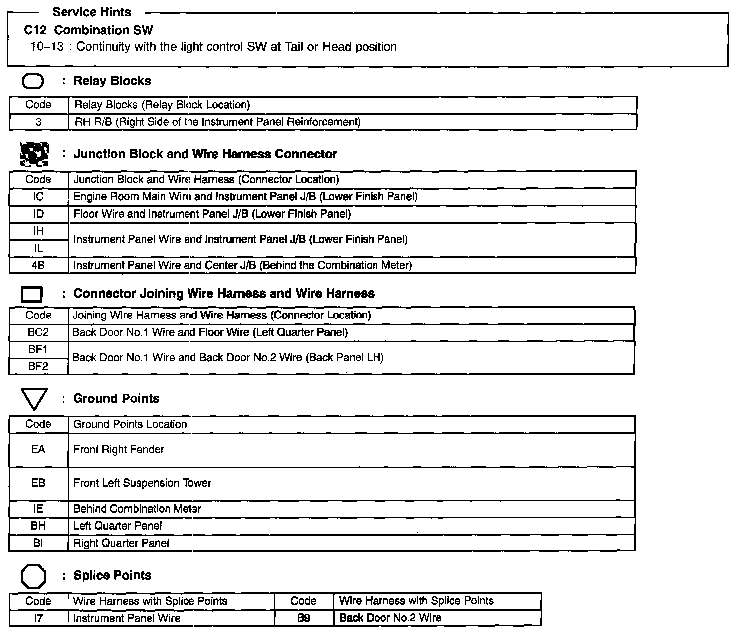 Locations: The locations of components, connectors, ground points, and splices referred to within these diagrams can be found at Vehicle Locations. Locations