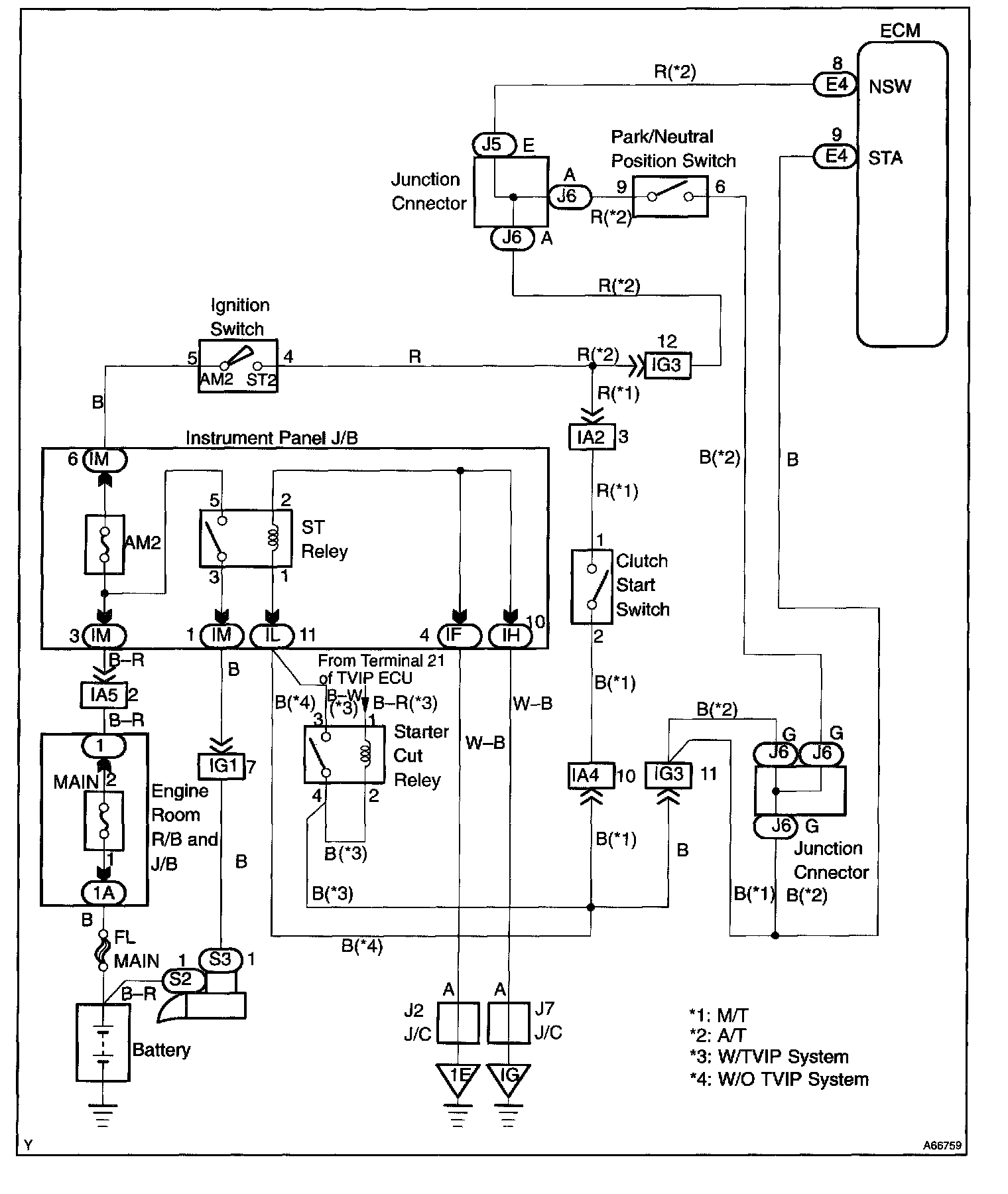 CIRCUIT DESCRIPTIONWhen the engine is cranked, the intake air how is slow, so fuel vaporization is poor. A rich mixture is therefore necessary in order to achieve good startability. While the engine is being cranked, the battery voltage is applied to terminal STA of the ECM. The starter signal is mainly used to increase the fuel injection volume for the starting injection control and after-start injection control.