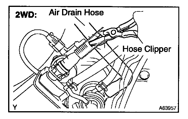 1. Close off the air drain hose at the marked position of the canister with a hose clipper or similar instrument.