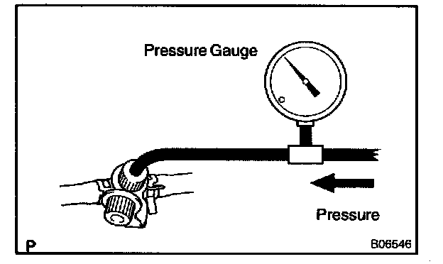 b. Pressurize and make the internal pressure in the fuel tank 4 kPa (41 gf/sq.cm, 0.58 psi).