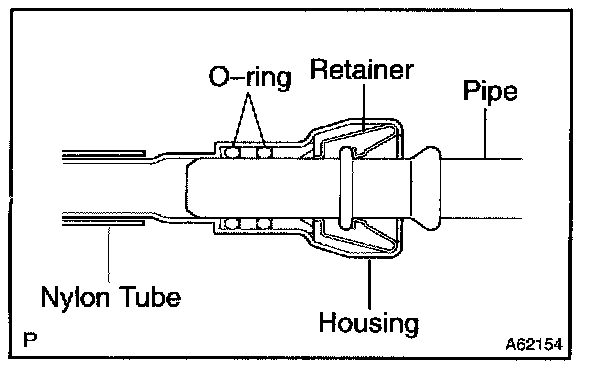 1. Match the axis of the connector with axis of the pipe, and push in the connector until retainer makes a "click" sound. In case that the connections is tight, apply little amount of new engine oil on the tip of the pipe.