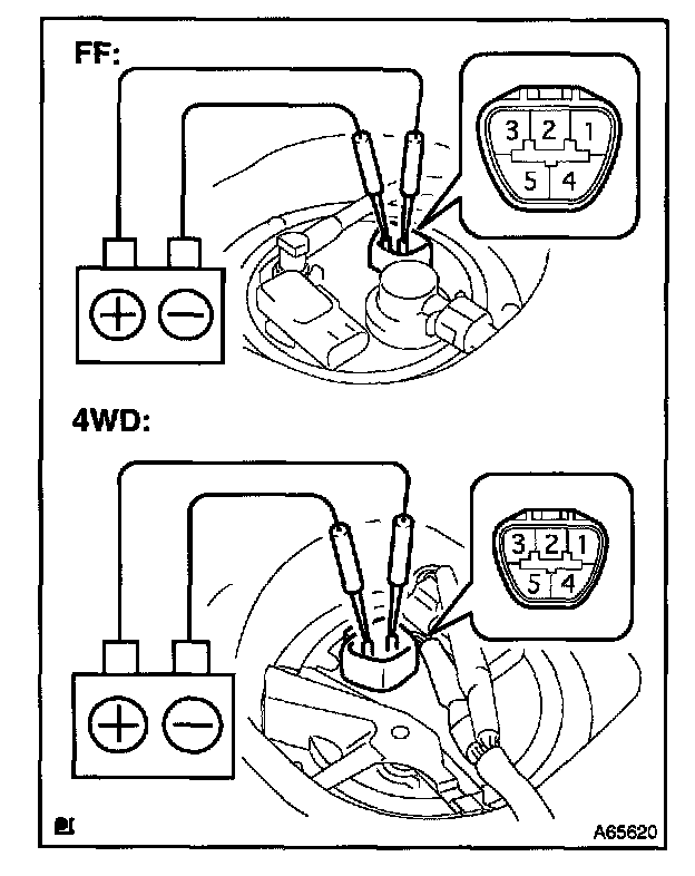 e. If you have no hand-held tester, connect the positive (+) lead form the battery to terminal 4 of the connector, and the negative (-) lead to terminal 5.