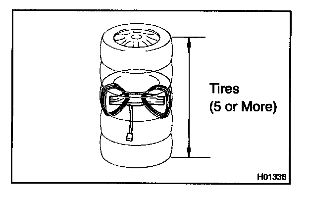 HINT: Place the SST connector and wire harness inside tires. Secure at least 1 m (3 ft) of slack for the wire harness.