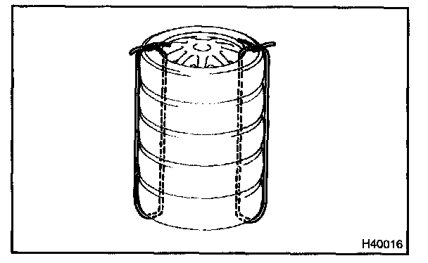 2. Place at least 2 tires over the tire to which the front seat airbag assy is tied. The top tire should have the wheel installed.
