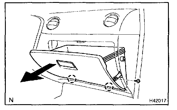 b. Remove the screw and glove compartment door assy.