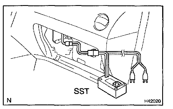 1. Connect the connector of the SST to the instrument panel passenger airbag assy connector.