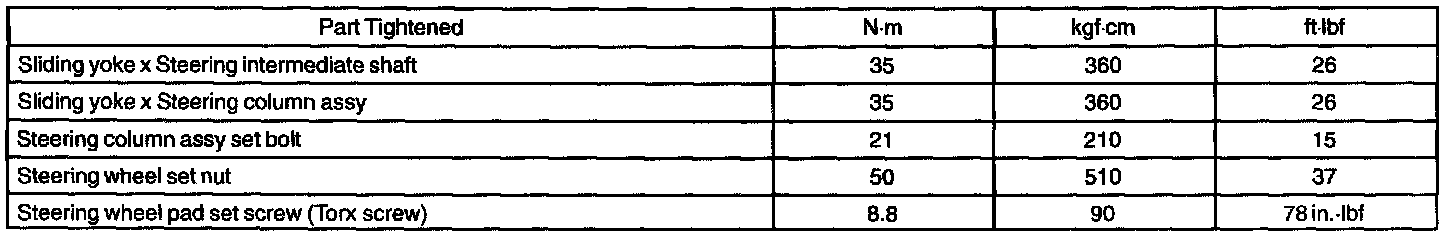 Steering Column - Torque Specification: