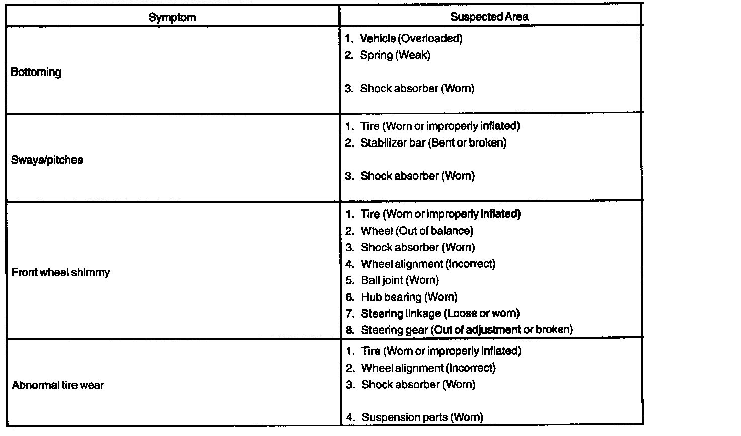 Use the table to help you find the cause of the problem. The numbers indicate the priority of the likely cause of the problem. Check each part in order. If necessary, replace these parts.