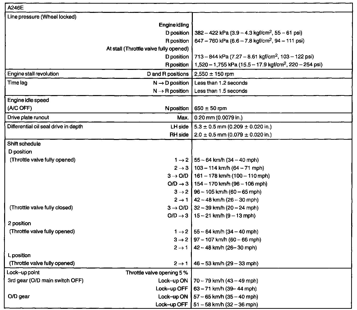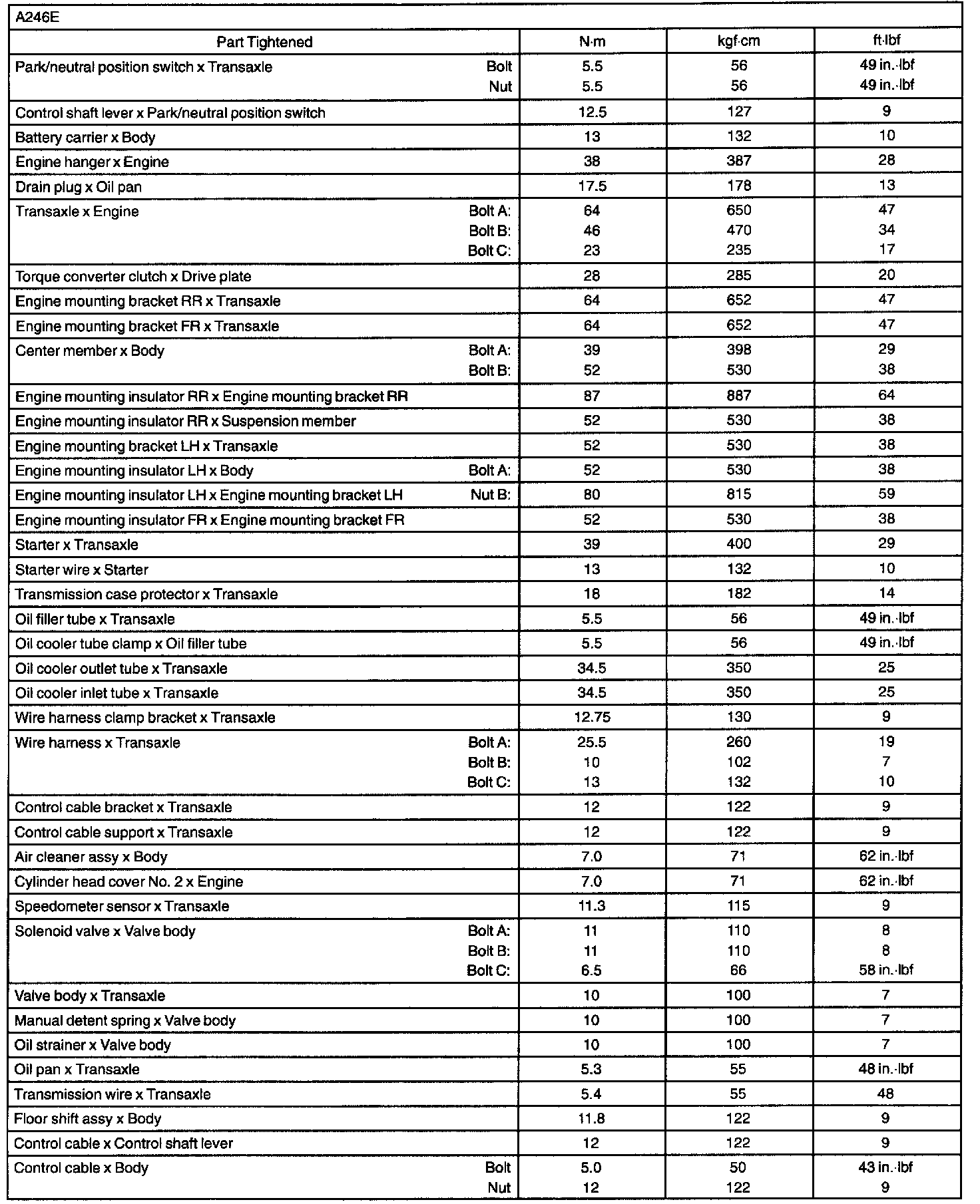 A246E Automatic Transmission/Transaxle - Torque Specification: