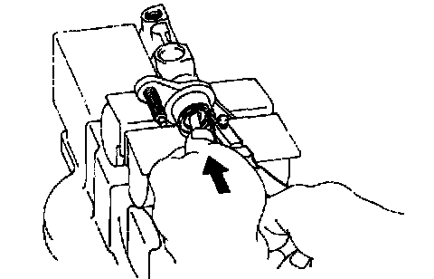 e. While pushing the push rod, using snap ring pliers, install the snap ring.