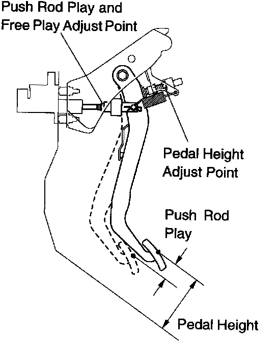 Push rod play at pedal top: 1.0 - 5.0 mm (0.039 - 0.197 inch)