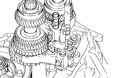 NOTICE: To avoid the interference of the 2 shift fork balls, lift up the gear shift fork shaft No. 3 at the position shown in the illustration.