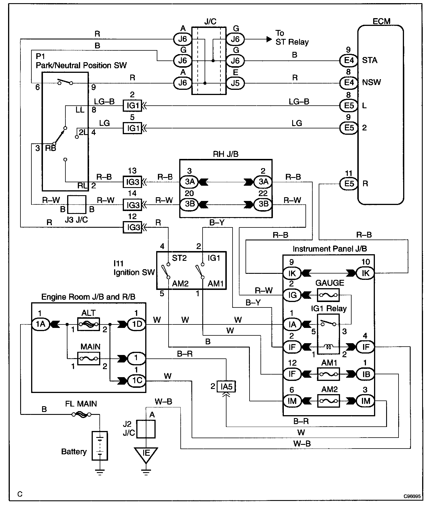 The park/neutral position switch detects the shift lever position and sends the signals to the ECM. The ECM receives the signals (NSW, R, 2 and L) from the park/neutral position switch when the signal is not sent to the ECM from the park/neutral position switch, the ECM judges that the shift lever is in the D position.