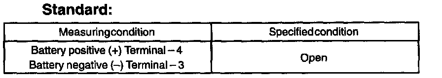 a. Apply battery voltage and inspect the window lock motor operation, as show in the illustration and table.