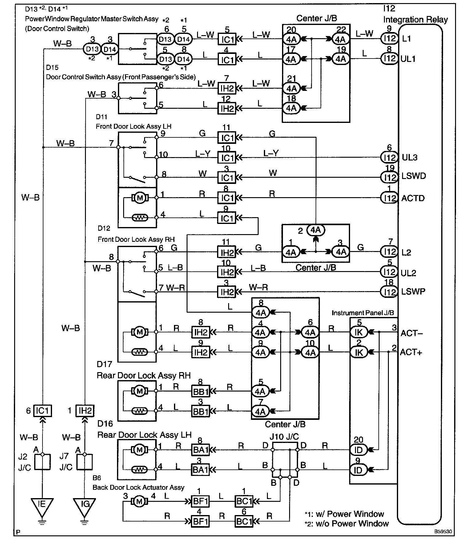 The integration relay receives a switch signal from the master switch, door lock control switch or the driver's door key and then drives the door lock motor.