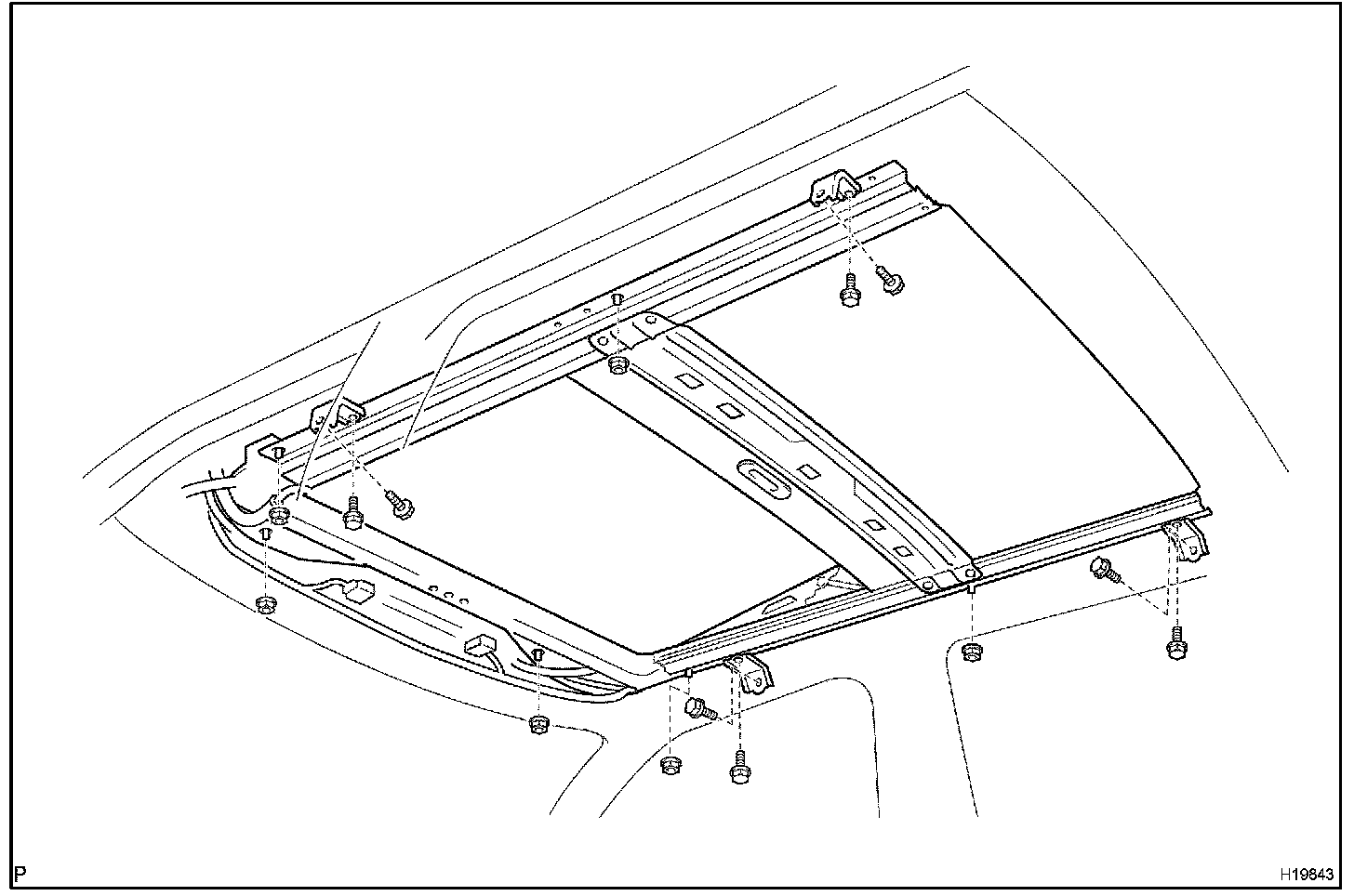 a. Using a torx wrench (T25), loosen the sliding roof glass installation screws.
