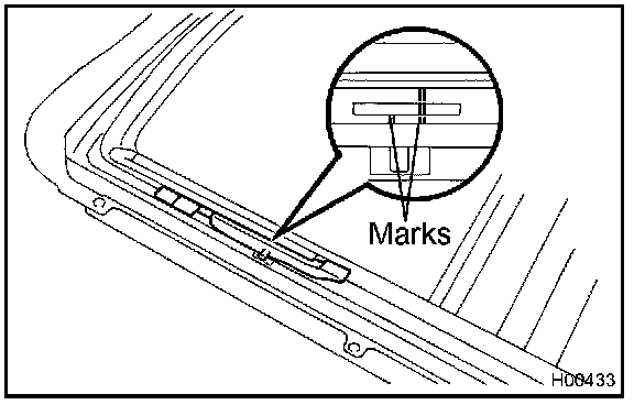 d. Adjust the roof rail by sliding the cable forward or backward to align the 2 marks, as shown in the illustration.