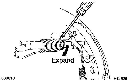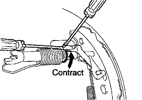 c. Using an another screwdriver, reduce the brake shoe adjuster by turning the adjusting wheel.
