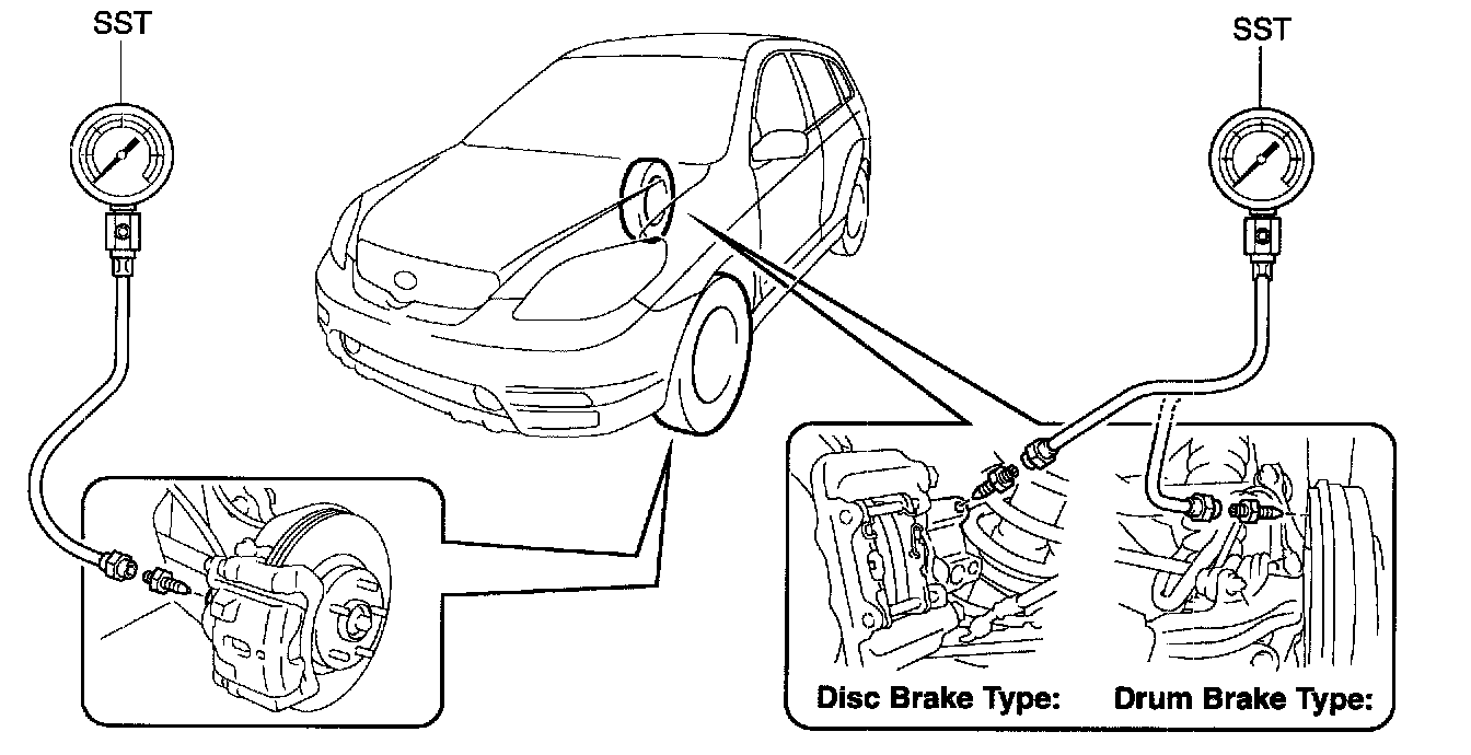 HINT: When inspecting the fluid pressure, inspect the left front and right rear together, and the right front and left rear together.