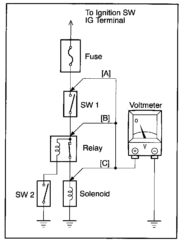 C - Ignition SW, SW 1 and Relay on (SW 2 off)