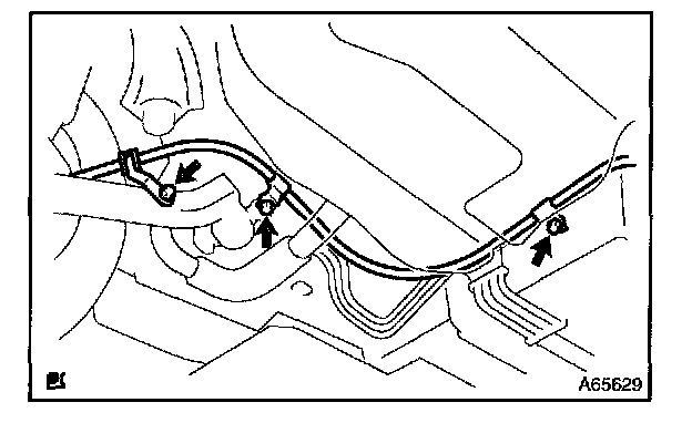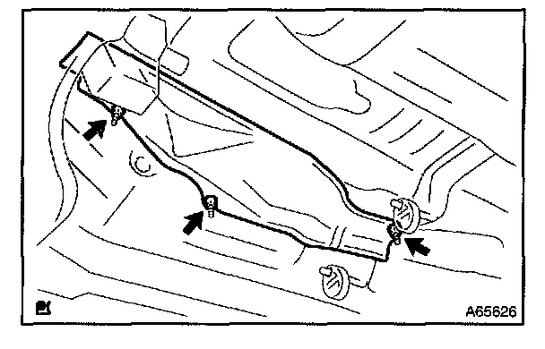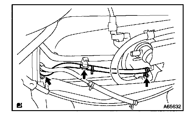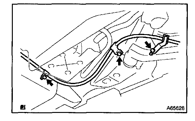 b. Remove the fuel tank to canister tube from the 2 evaporation vent tube clamps.