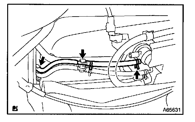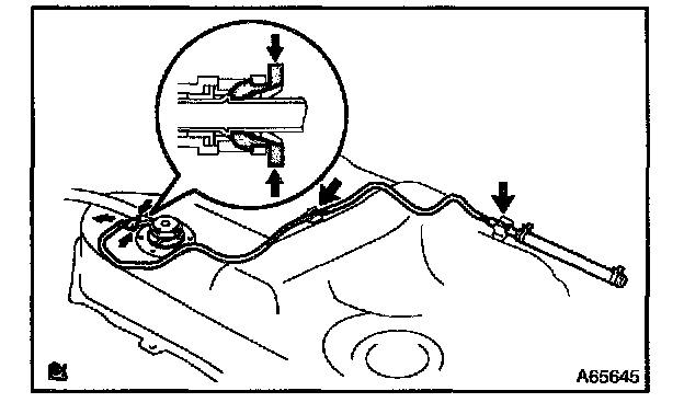 - When the fuel tube connector and pipe are stuck, pinch the fuel evaporation tube between fingers, and turn it carefully to free and then disconnect the fuel evaporation tube.