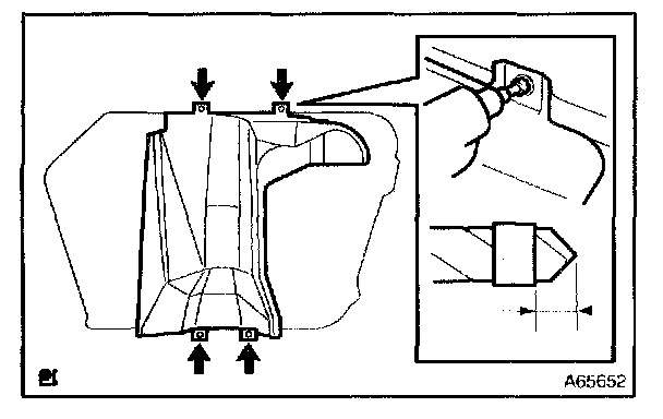 Using a riveter, install the fuel tank protector with the 4 new rivet.