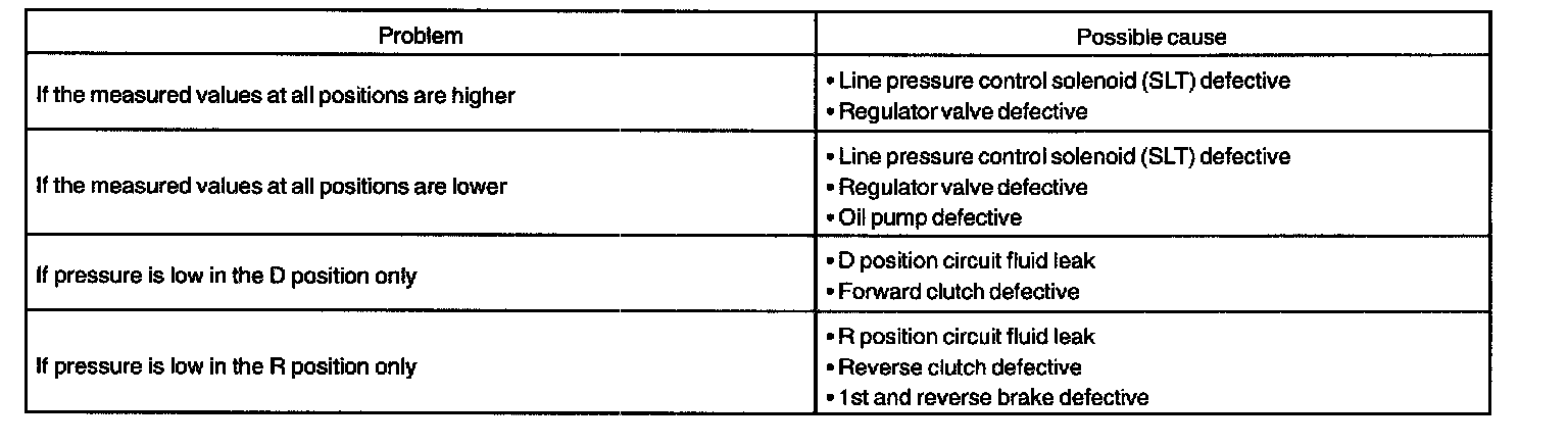 8. Depress the accelerator pedal all the way down. Quickly read the highest line pressure when the engine speed reaches the stall speed.