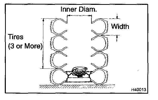 - When dimension Y of the cardboard box exceeds the diameter of the disc wheel with tire to which the horn button assy is tied, X should be the following size. X = 460 mm (18.11 in.) + width of tire