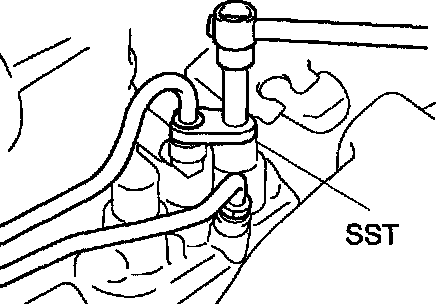 a. Using SST, disconnect the oil cooler inlet tube No. 1.