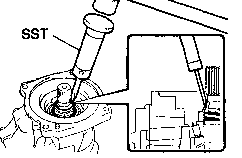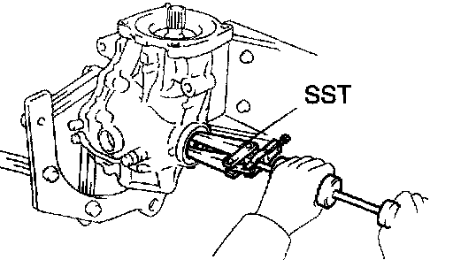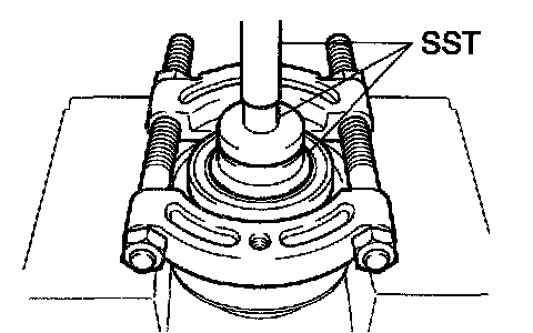 a. Using SST and a press, remove the transmission coupling radial ball bearing No. 1.